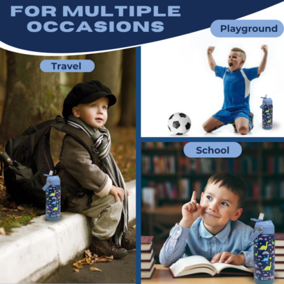 - EASY SIP STRAW FOR KIDS: Featuring a convenient built-in straw, this water bottle kids allows spill-free, effortless sipping, perfect for kids on the go.